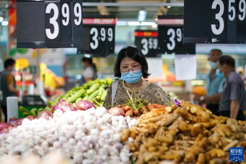 市民在江蘇省無錫市經(jīng)開區(qū)華潤萬家超市購物(2022年7月7日攝)。江蘇省無錫市在做好疫情防控的同時,積極制定相關(guān)方案,制作城市保供地圖,組織大型商超、市場正常運營,全力保供穩(wěn)價,端穩(wěn)市民“菜籃子”。新華社記者李博攝