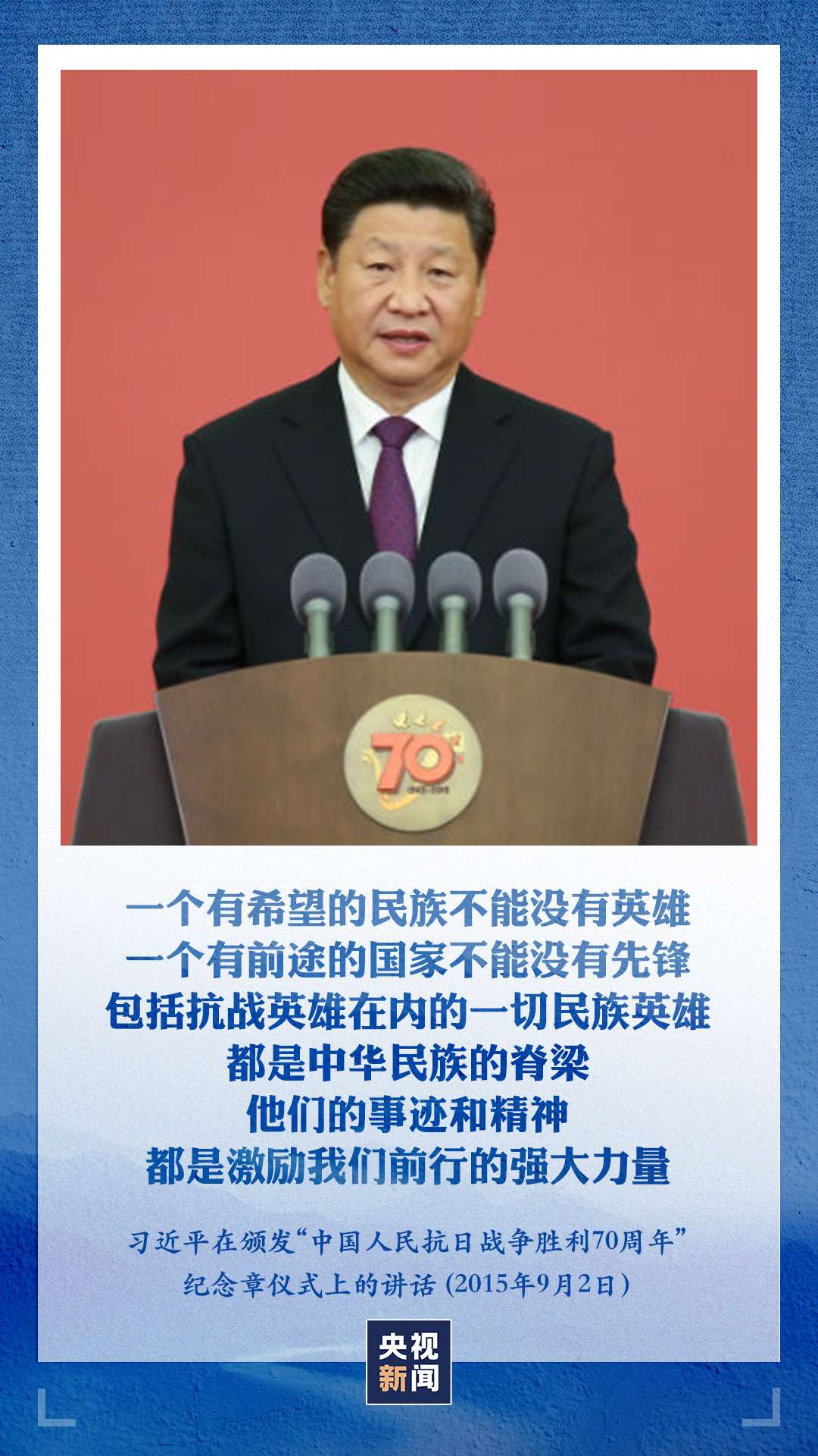 “一個有希望的民族不能沒有英雄,一個有前途的國家不能沒有先鋒?!绷?xí)近平總書記強調(diào),包括抗戰(zhàn)英雄在內(nèi)的一切民族英雄,都是中華民族的脊梁,他們的事跡和精神都是激勵我們前行的強大力量。