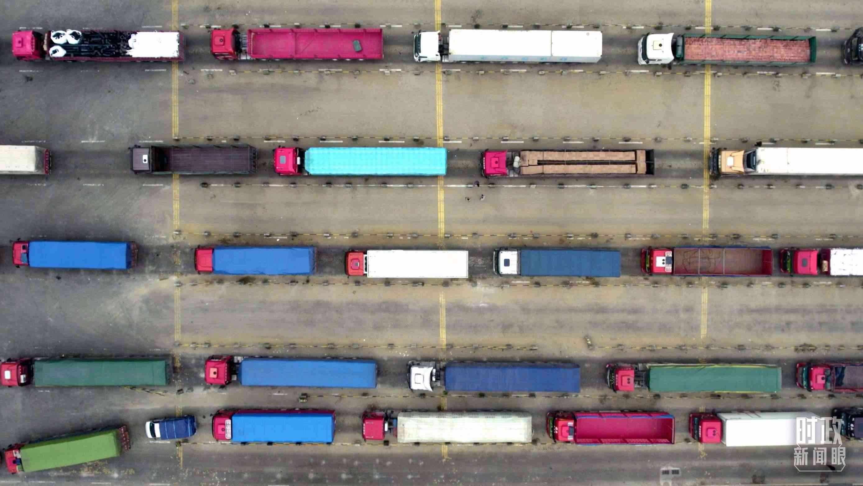 △徐聞港內(nèi)運(yùn)送貨物的車隊。(總臺央視記者范凱拍攝)