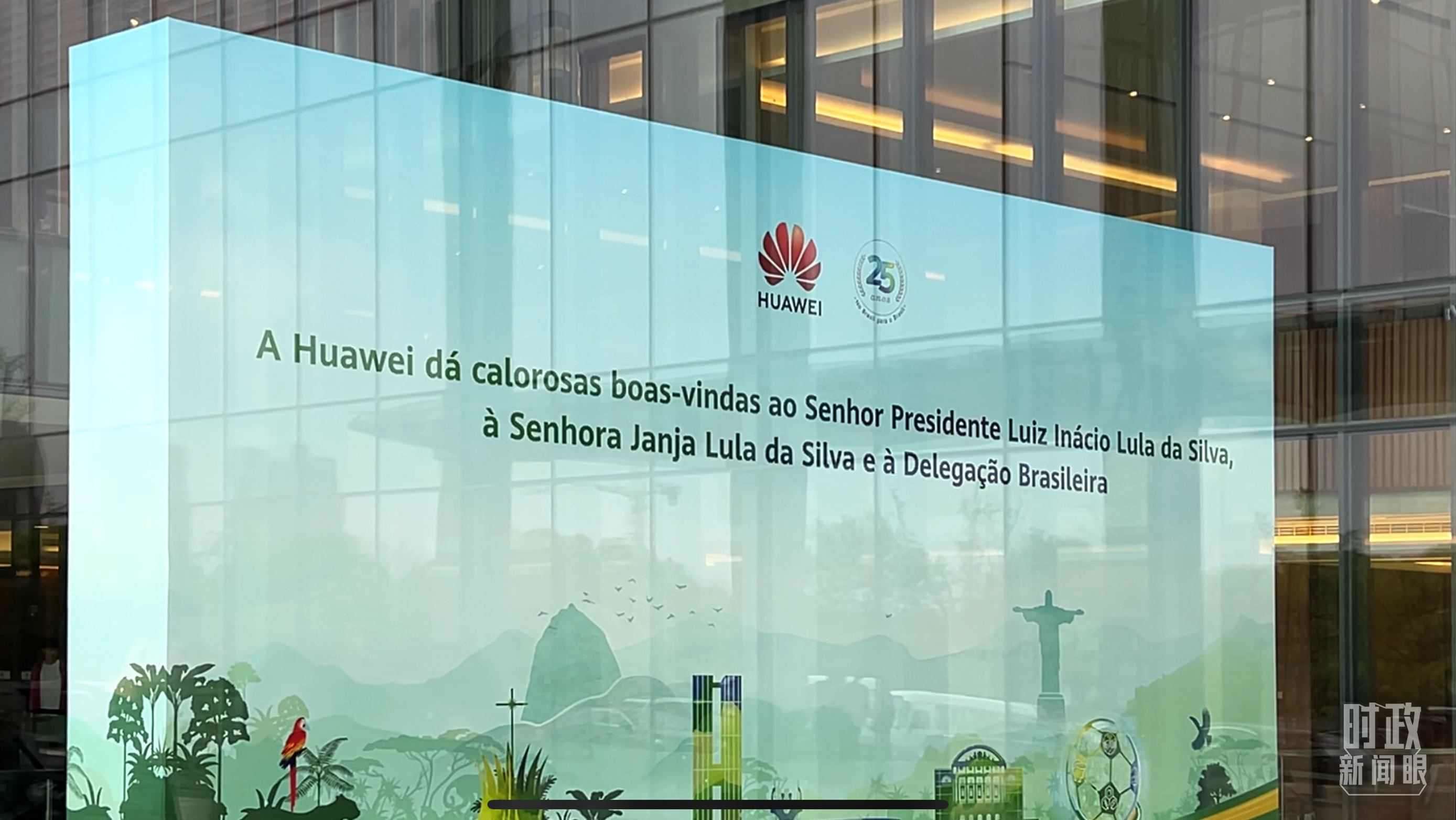 △華為上海研究所內(nèi)歡迎盧拉總統(tǒng)參觀訪問的標語。(總臺央視記者楊新禹拍攝)