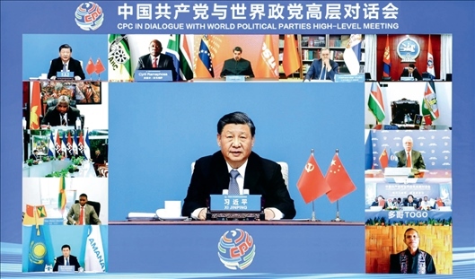 2023年3月15日,北京,中共中央總書記、國(guó)家主席習(xí)近平在中國(guó)共產(chǎn)黨與世界政黨高層對(duì)話會(huì)上發(fā)表題為《攜手同行現(xiàn)代化之路》的主旨講話,并首次提出全球文明倡議。圖/新華社記者 黃敬文 攝