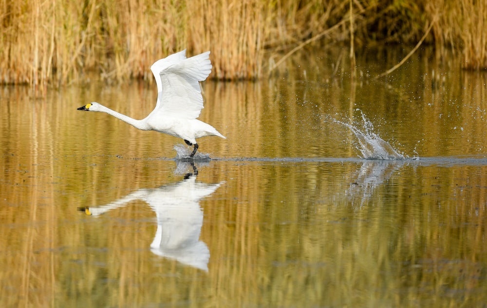 2020年10月28日,天鵝在烏梁素海水面上嬉戲。
