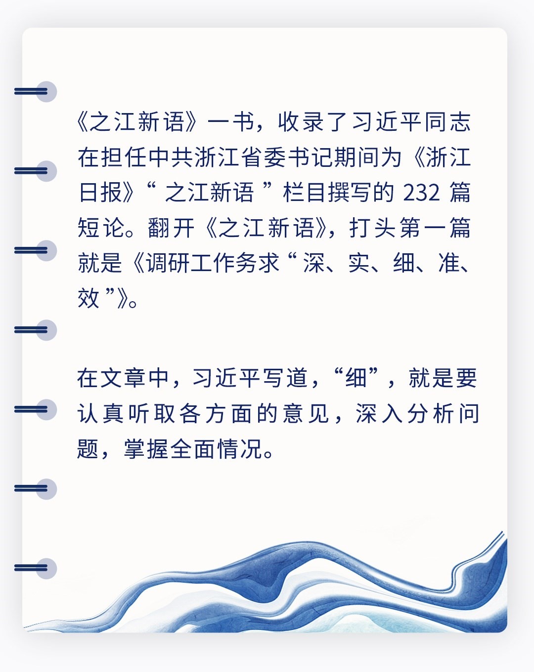 “開展深入細致的調(diào)查研究,抓住老百姓最急最憂最怨的問題,解決好群眾最關(guān)心最直接最現(xiàn)實的利益問題”。2017年12月,在中共中央政治局召開的民主生活會上,習(xí)近平總書記一語道出調(diào)查研究求“細”的關(guān)鍵。