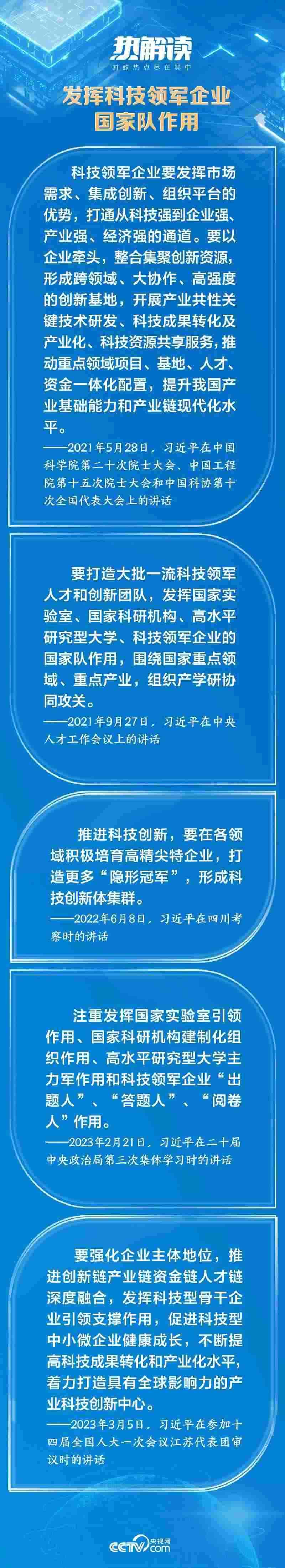 企業(yè)是市場(chǎng)的主體,是推動(dòng)科技創(chuàng)新的生力軍。作為國(guó)家戰(zhàn)略科技力量的重要組成部分,總書(shū)記對(duì)科技領(lǐng)軍企業(yè)更是寄予厚望:“要自覺(jué)履行高水平科技自立自強(qiáng)的使命擔(dān)當(dāng)”,要注重發(fā)揮“科技領(lǐng)軍企業(yè)‘出題人’、‘答題人’、‘閱卷人’作用”。