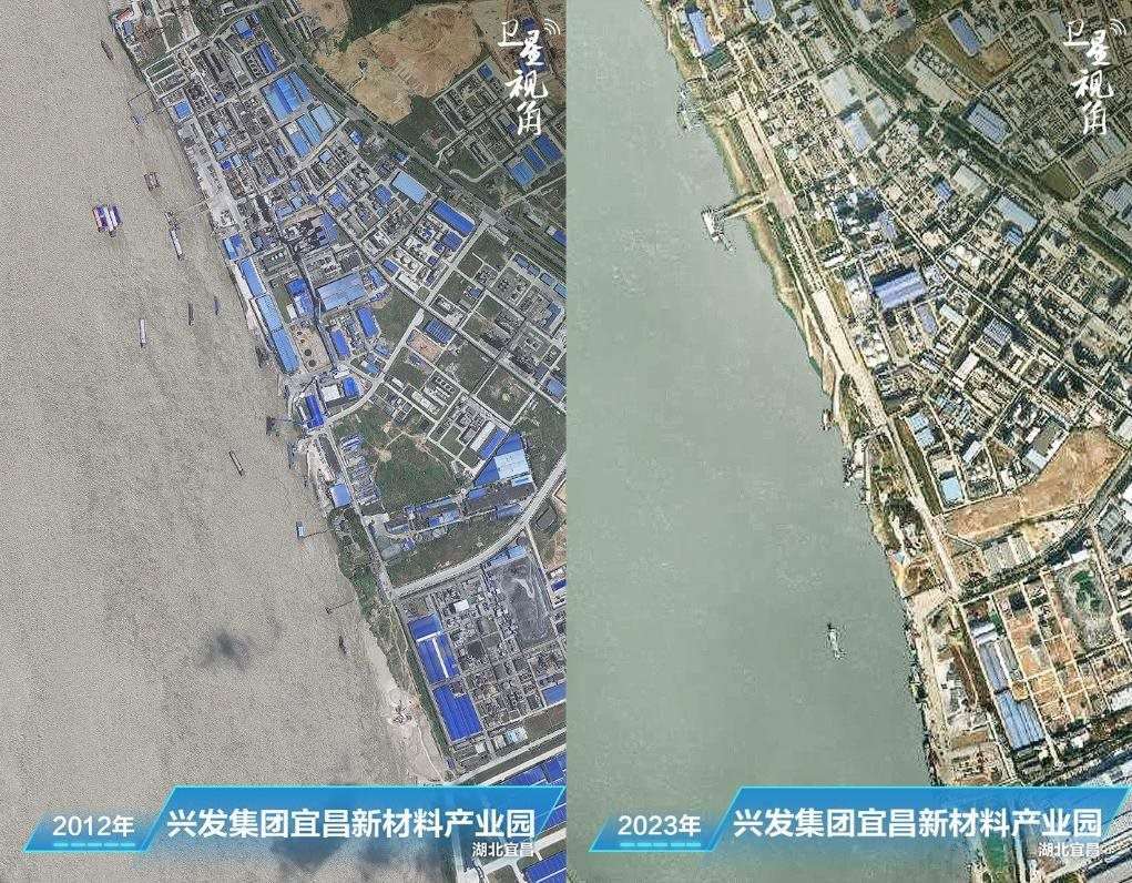 ↑2023年與2012年相比,興發(fā)集團宜昌新材料產(chǎn)業(yè)園內(nèi),原來臨江建設(shè)的生產(chǎn)設(shè)施已經(jīng)搬遷和拆除。