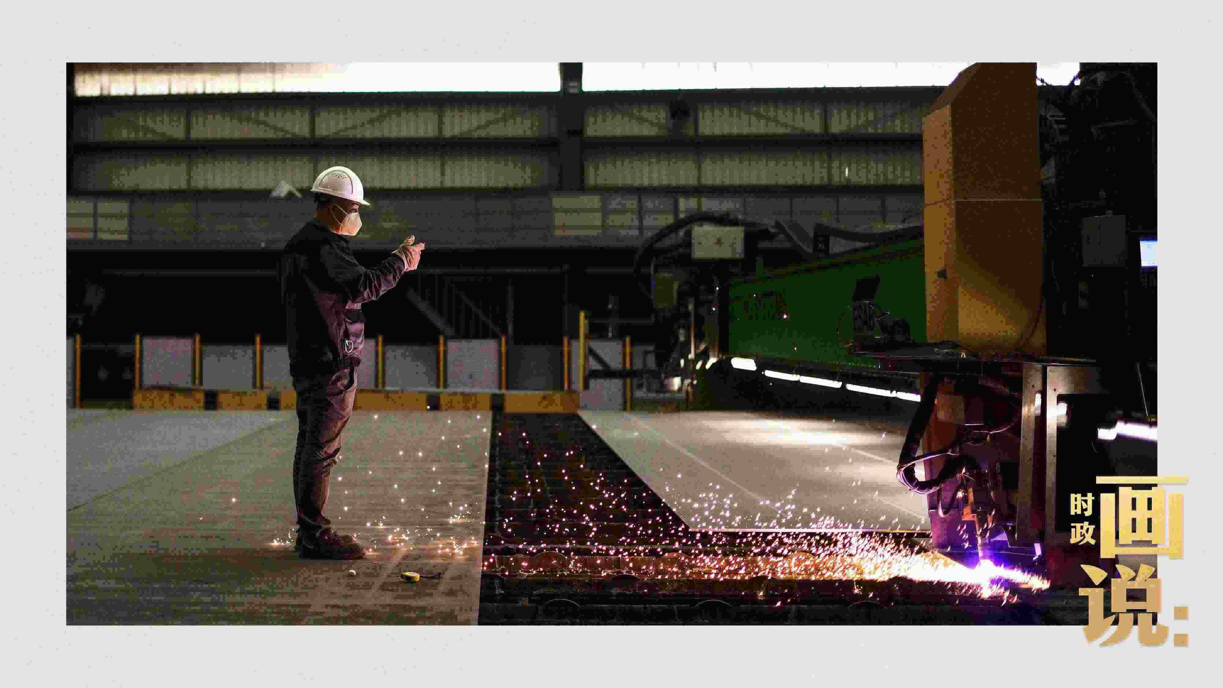 △薄板智能生產中心內,激光切割機正在將特種鋼板加工成標準零件。浦東新區(qū),上海。
