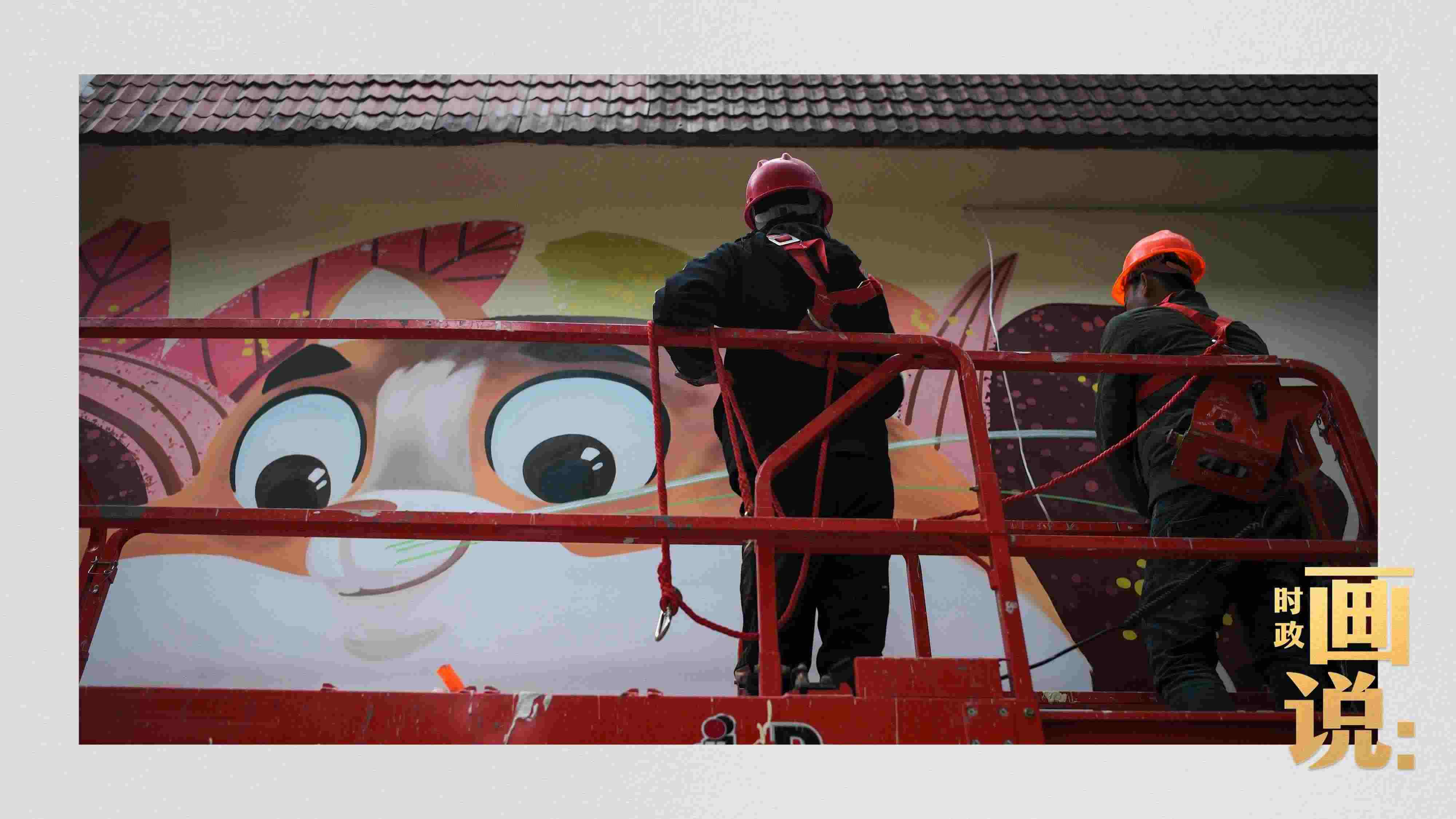 △工人在街道外墻上噴繪畫作,一座城市的藝術氣息濃縮于街巷的細節(jié)里。南昌路,上海。