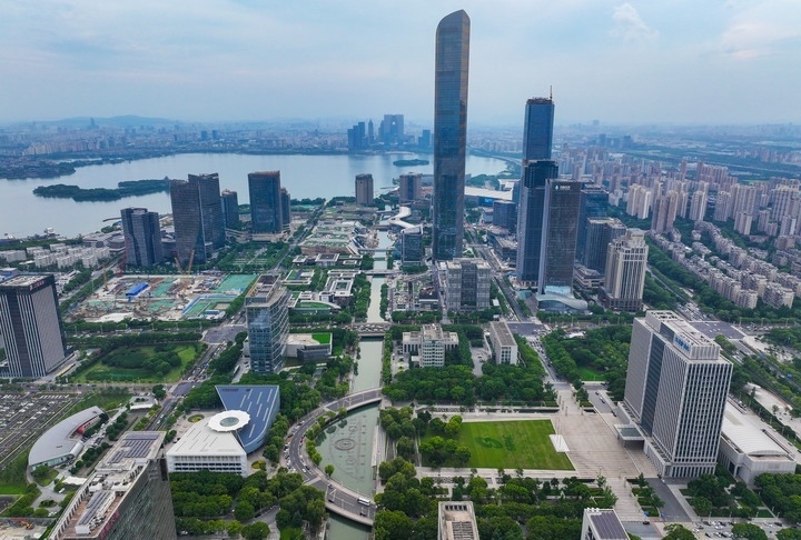 蘇州工業(yè)園區(qū)(無人機(jī)照片,2023年7月3日攝)。新華社記者李博攝