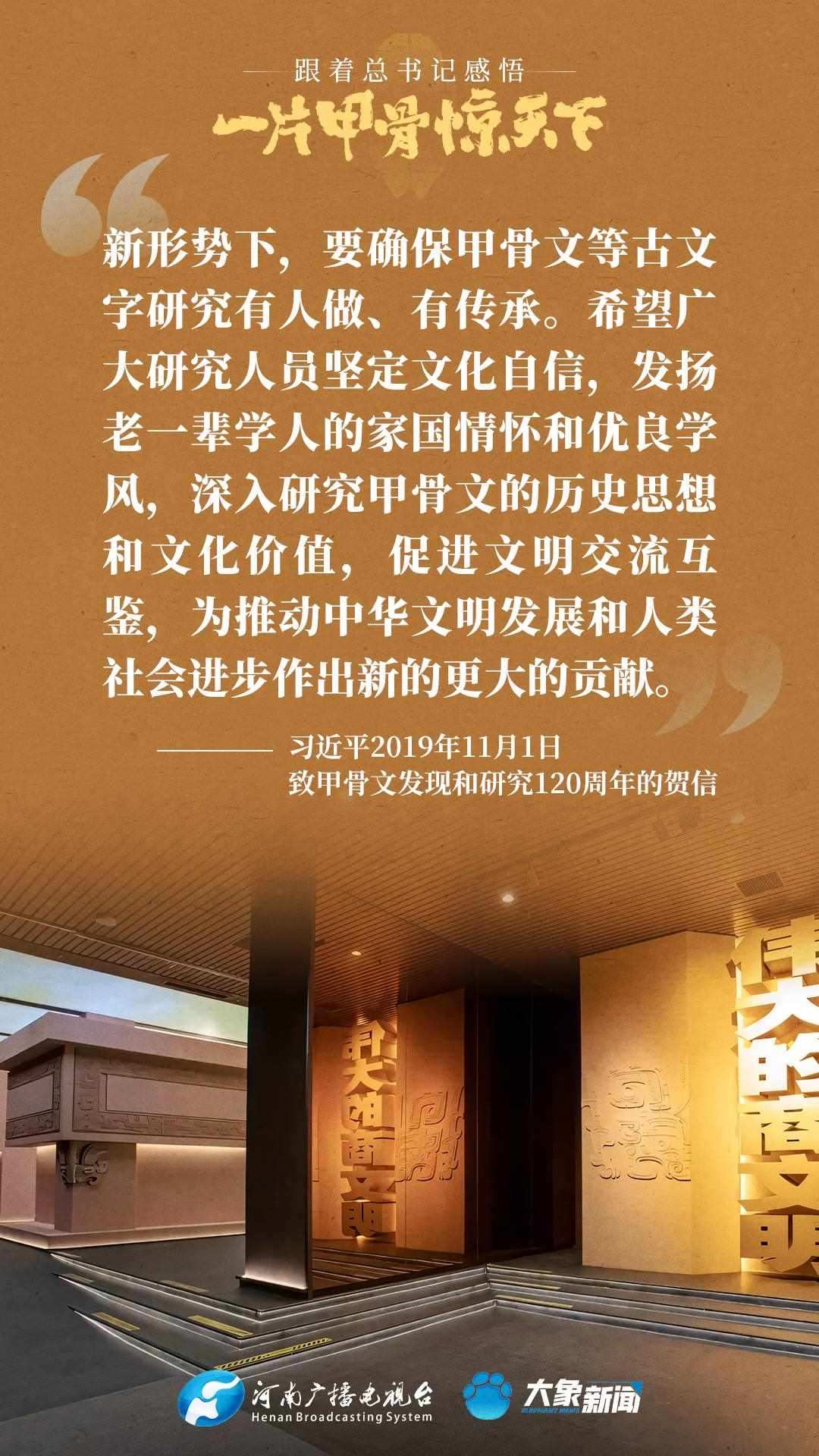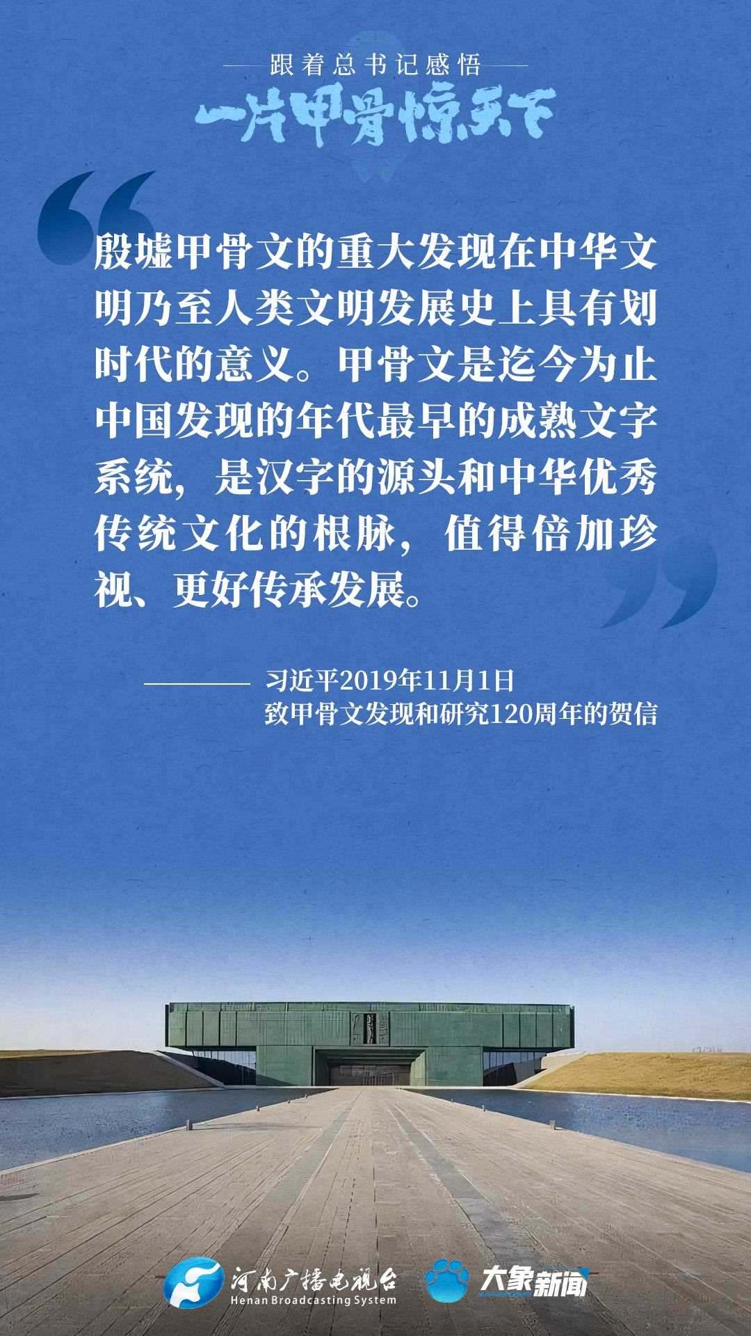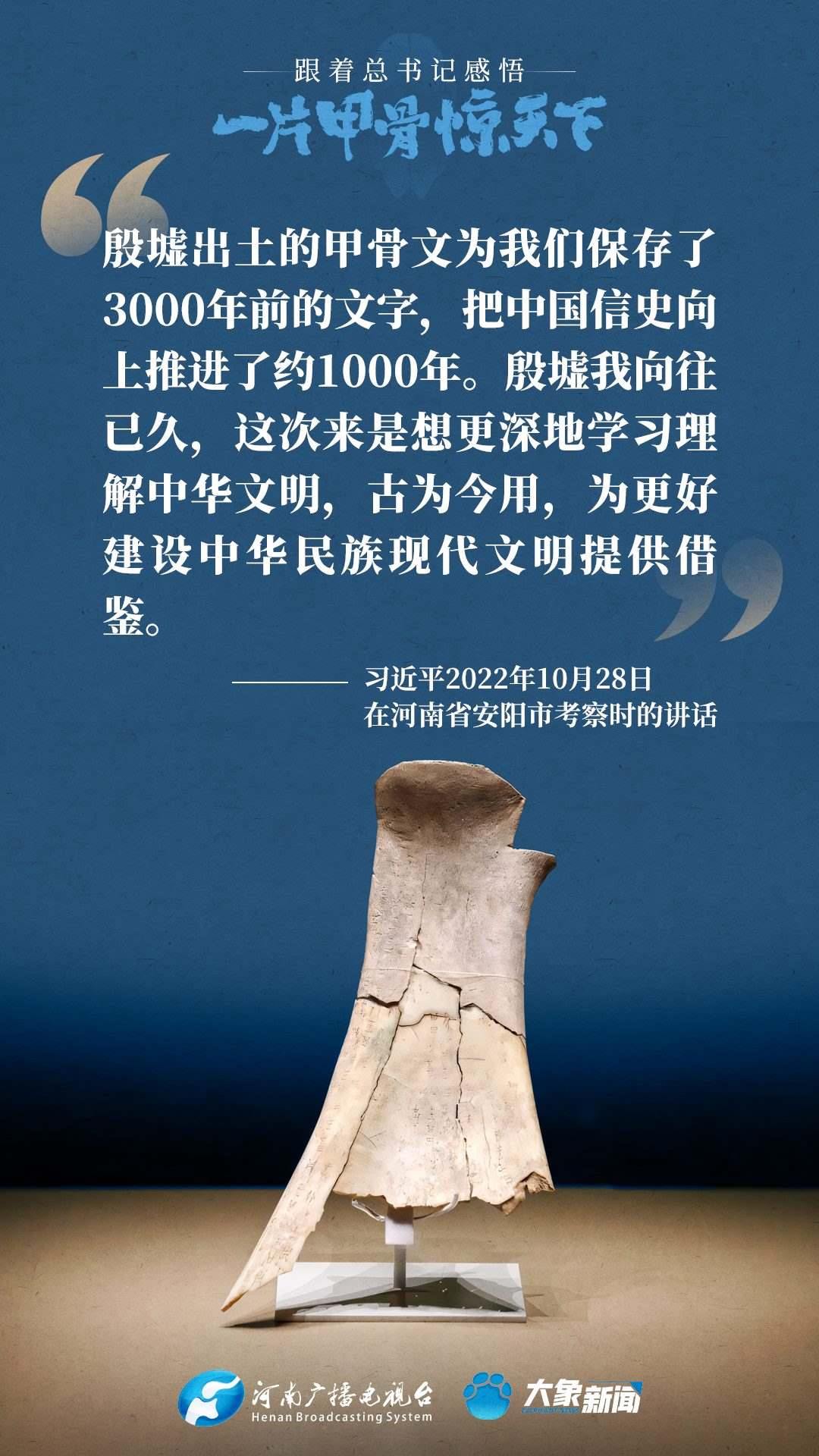 黨的十八大以來(lái),習(xí)近平總書(shū)記多次就殷墟和甲骨文保護(hù)研究利用工作作出重要講話(huà)重要指示,為我們堅(jiān)定文化自信,傳承發(fā)展中華優(yōu)秀傳統(tǒng)文化提供了根本遵循。大象新聞邀您一起回顧、學(xué)習(xí)。