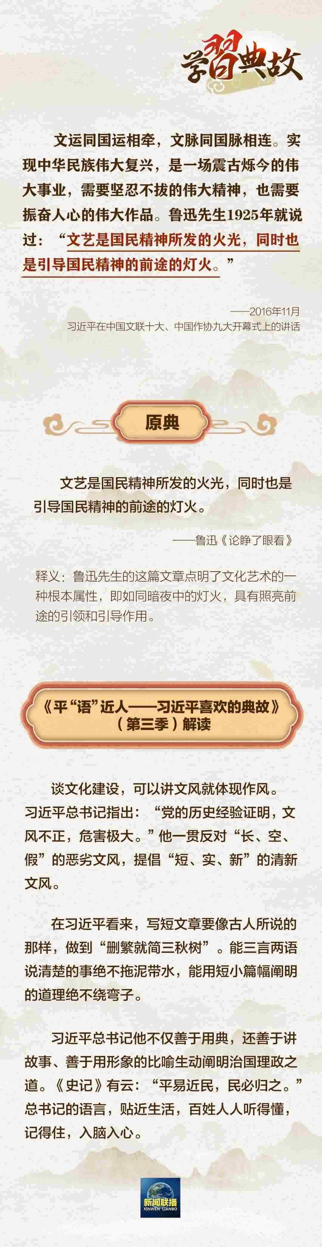 文運(yùn)同國運(yùn)相牽,文脈同國脈相連。文化自信是一個(gè)國家、一個(gè)民族發(fā)展中,最基本、最深沉、最持久的力量。黨的二十大報(bào)告中指出:“全面建設(shè)社會(huì)主義現(xiàn)代化國家,必須堅(jiān)持中國特色社會(huì)主義文化發(fā)展道路?!眹@“文化建設(shè)”這一主題,總書記曾講到哪些典故?一起學(xué)習(xí)↓↓↓