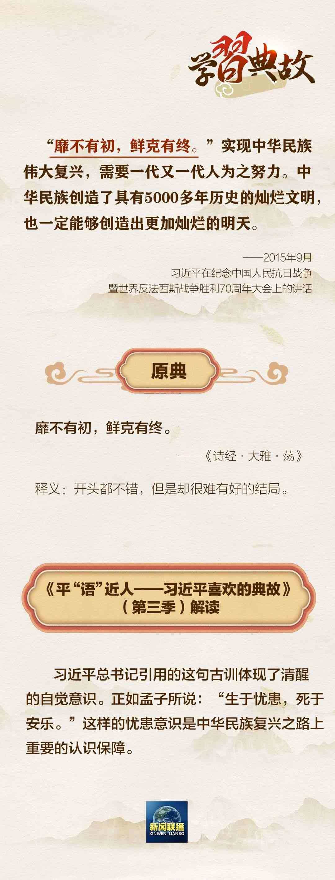 在黨的二十大報(bào)告中,習(xí)近平總書記指出:“從現(xiàn)在起,中國(guó)共產(chǎn)黨的中心任務(wù)就是團(tuán)結(jié)帶領(lǐng)全國(guó)各族人民全面建成社會(huì)主義現(xiàn)代化強(qiáng)國(guó)、實(shí)現(xiàn)第二個(gè)百年奮斗目標(biāo),以中國(guó)式現(xiàn)代化全面推進(jìn)中華民族偉大復(fù)興。”圍繞“以中國(guó)式現(xiàn)代化全面推進(jìn)中華民族偉大復(fù)興”,總書記曾講到哪些典故?一起學(xué)習(xí)↓↓↓