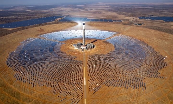 這是2024年8月20日在南非北開普省拍攝的南非紅石100兆瓦塔式熔鹽光熱電站項(xiàng)目(無人機(jī)照片)。 新華社記者 張譽(yù)東 攝