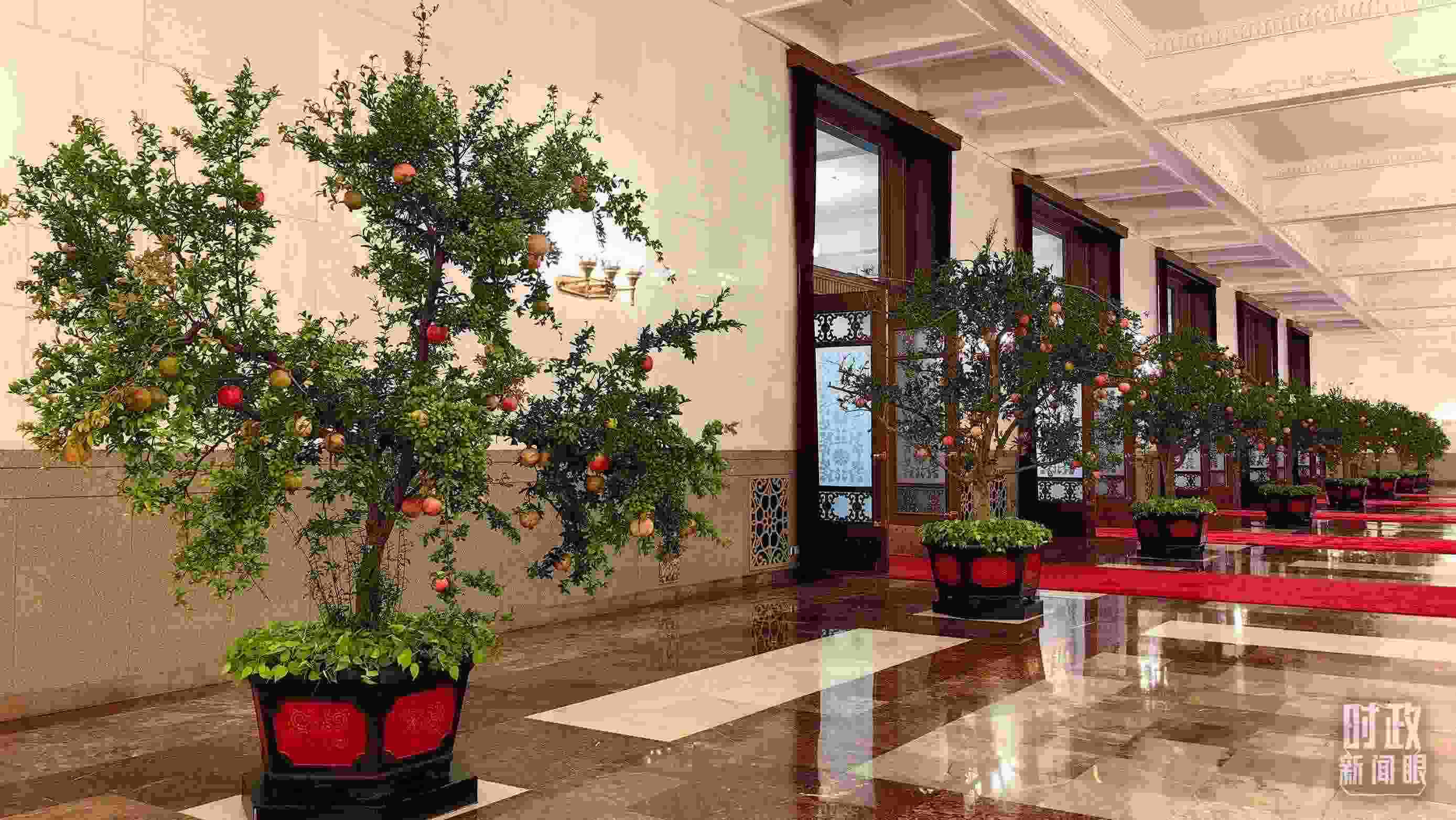 △人民大會堂碩果累累的石榴盆栽。(總臺央視記者王曉東拍攝)