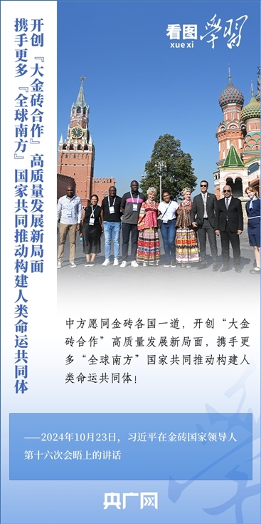 當(dāng)?shù)貢r間10月23日,國家主席習(xí)近平在俄羅斯喀山出席金磚國家領(lǐng)導(dǎo)人第十六次會晤并發(fā)表重要講話。習(xí)主席深刻闡述推動“大金磚合作”高質(zhì)量發(fā)展的中國主張,就金磚大家庭發(fā)展合作提出五點務(wù)實舉措,表達(dá)了中方愿同金磚各國一道,攜手更多“全球南方”國家共同推動構(gòu)建人類命運共同體的真誠愿望。一起來學(xué)習(xí)!