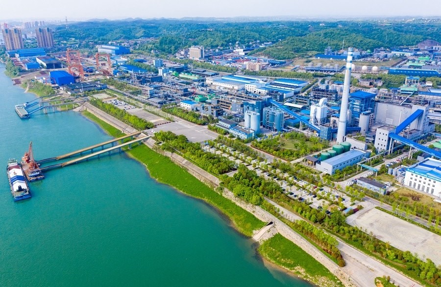 這是位于湖北省宜昌市的興發(fā)集團(tuán)宜昌新材料產(chǎn)業(yè)園(2022年4月19日攝,無(wú)人機(jī)照片)。新華社發(fā)