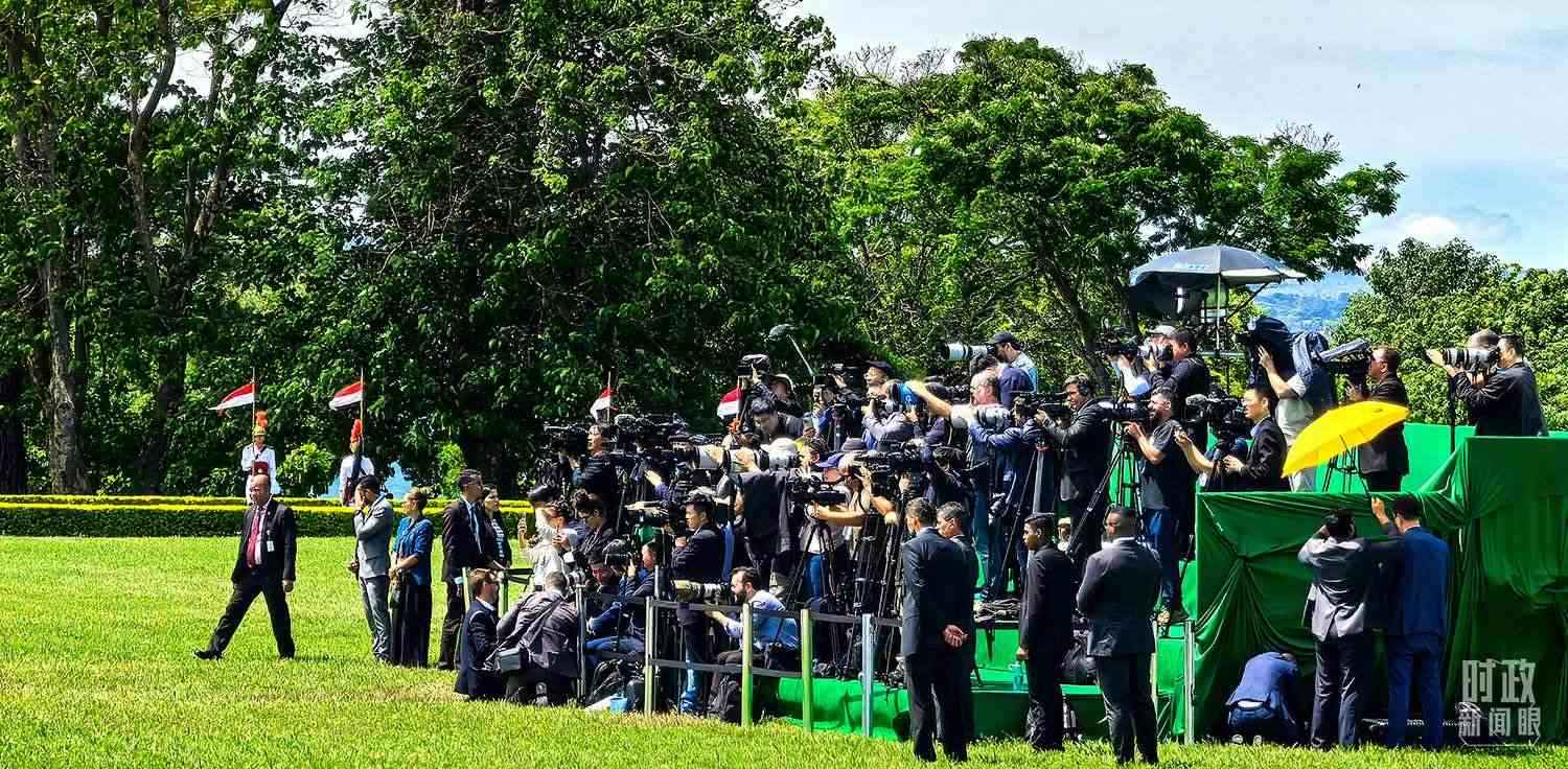 △歡迎儀式現(xiàn)場的媒體記者。(總臺央視記者周志國拍攝)