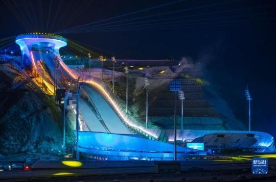 這是位于河北省張家口市崇禮區(qū)的國家跳臺(tái)滑雪中心“雪如意”點(diǎn)亮效果(無人機(jī)照片,2020年12月19日攝)。新華社發(fā)