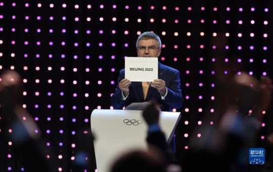 2015年7月31日,國際奧委會(huì)主席巴赫在國際奧委會(huì)第128次全會(huì)上宣布北京攜手張家口獲得2022年冬奧會(huì)舉辦權(quán)。新華社記者 公磊 攝