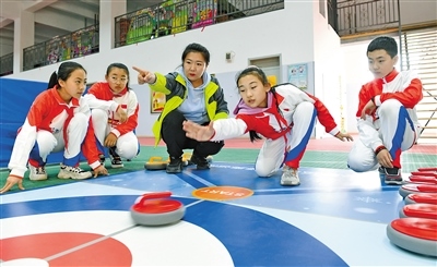 呼和浩特市賽罕區(qū)錫林南路小學(xué)分校學(xué)生體驗(yàn)旱地冰壺運(yùn)動。記者 王磊 攝