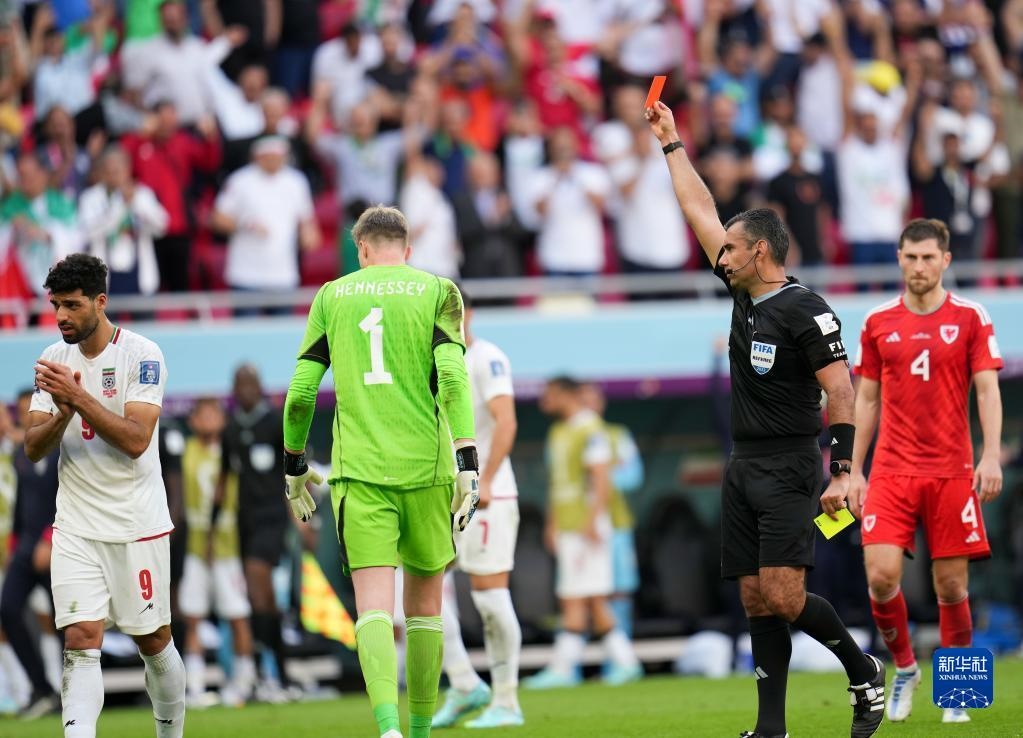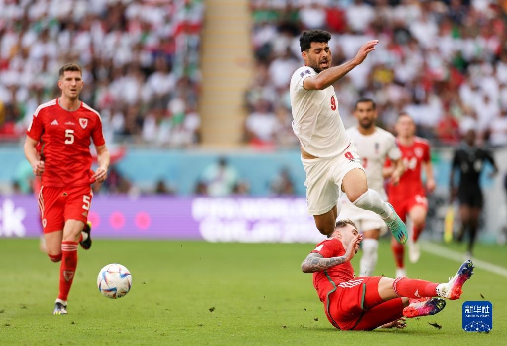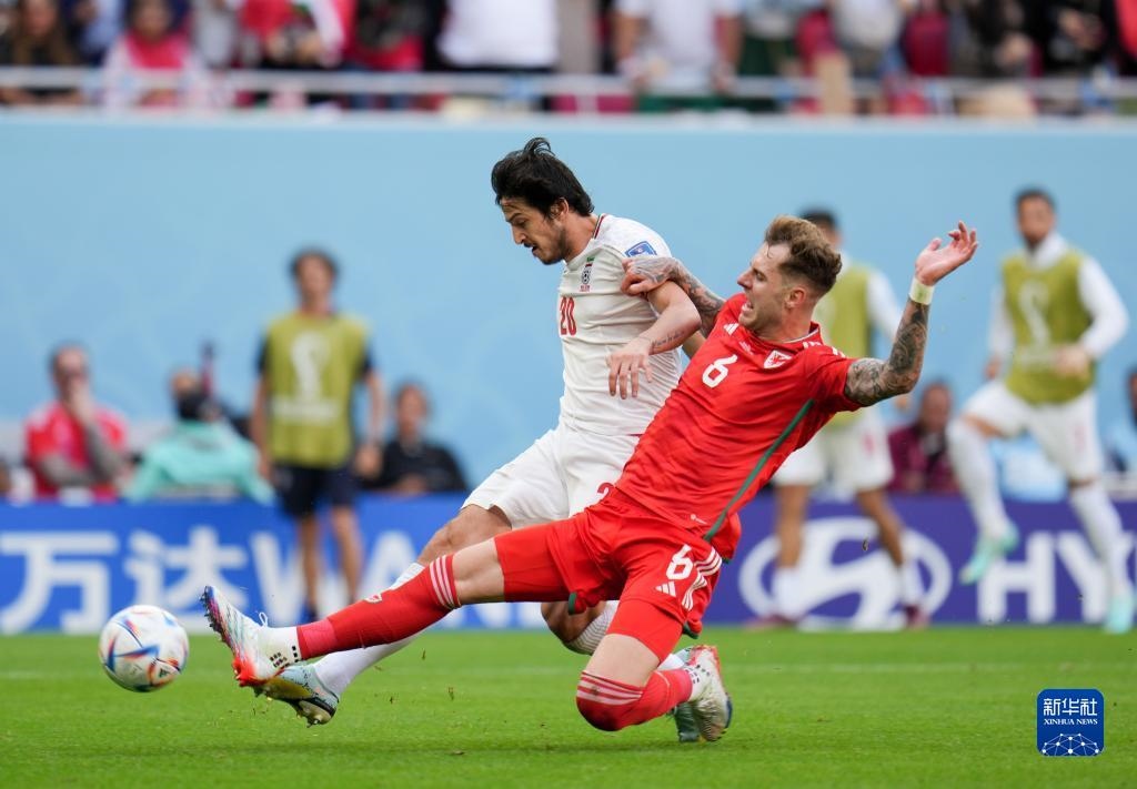 當日,在卡塔爾多哈艾哈邁德·本·阿里體育場進行的2022卡塔爾世界杯足球賽B組比賽中,伊朗隊以2比0戰(zhàn)勝威爾士隊。
