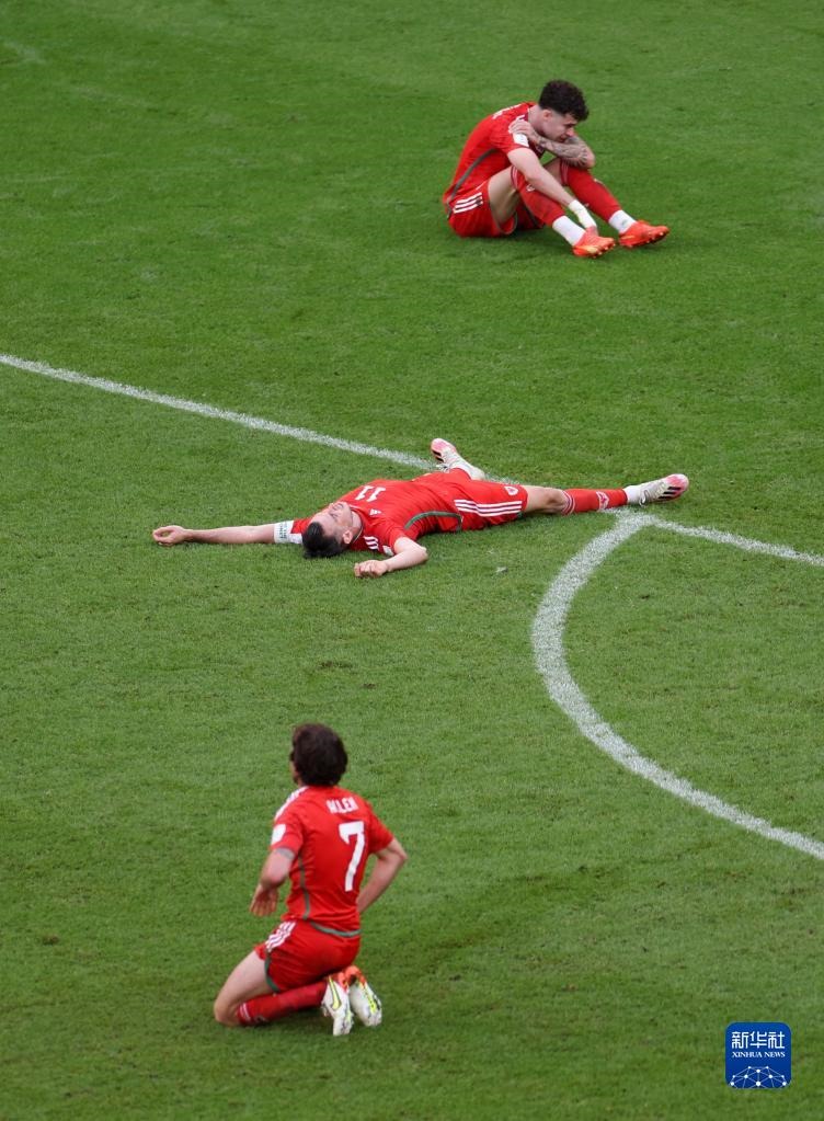 11月25日,威爾士隊球員加雷斯·貝爾(中)在本隊被打入第一粒進球后。新華社記者 賈浩成 攝