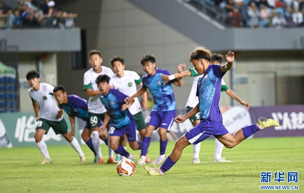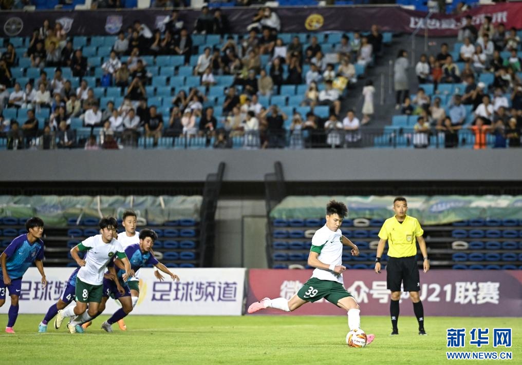 ??6月15日,浙江俱樂(lè)部U21隊(duì)球員王鈺棟(前右)在比賽中主罰點(diǎn)球得分。