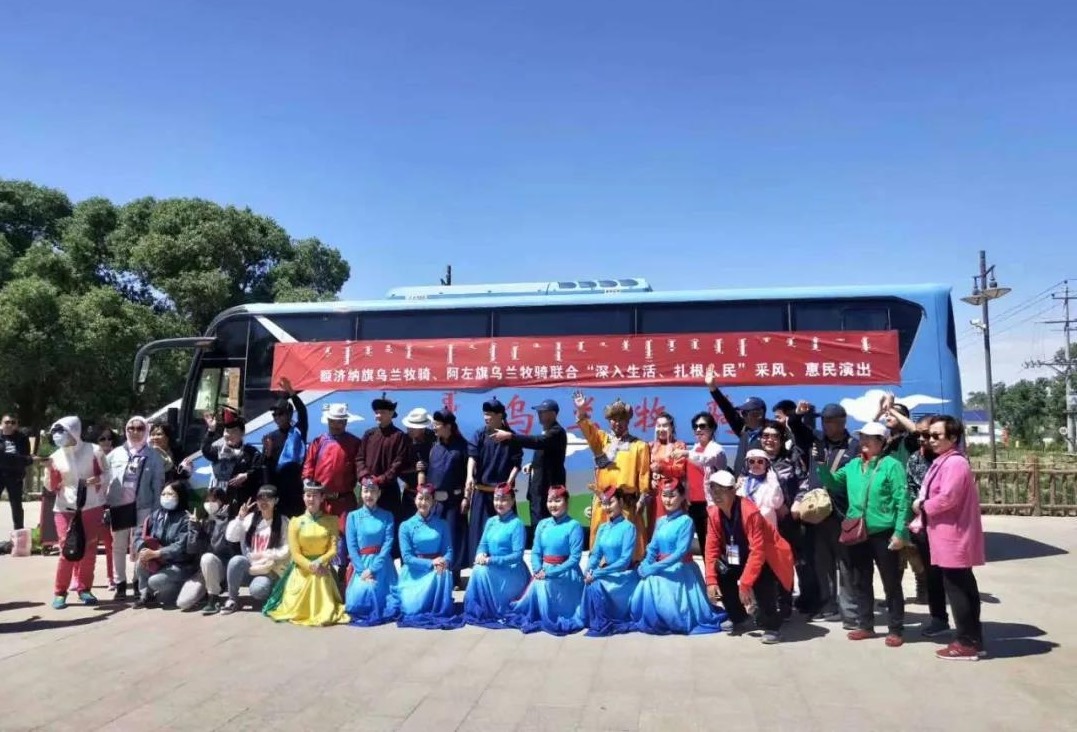 5月28日至6月2日,阿拉善左旗文化旅游局組織阿拉善左旗烏蘭牧騎11名隊員抵達額濟納旗,開展了為期6天的“深入生活,扎根人民”采風創(chuàng)作、惠民演出活動。額濟納旗文化旅游廣電局相關領導及烏蘭牧騎隊員們?nèi)膛阃瑓⑴c此次活動。