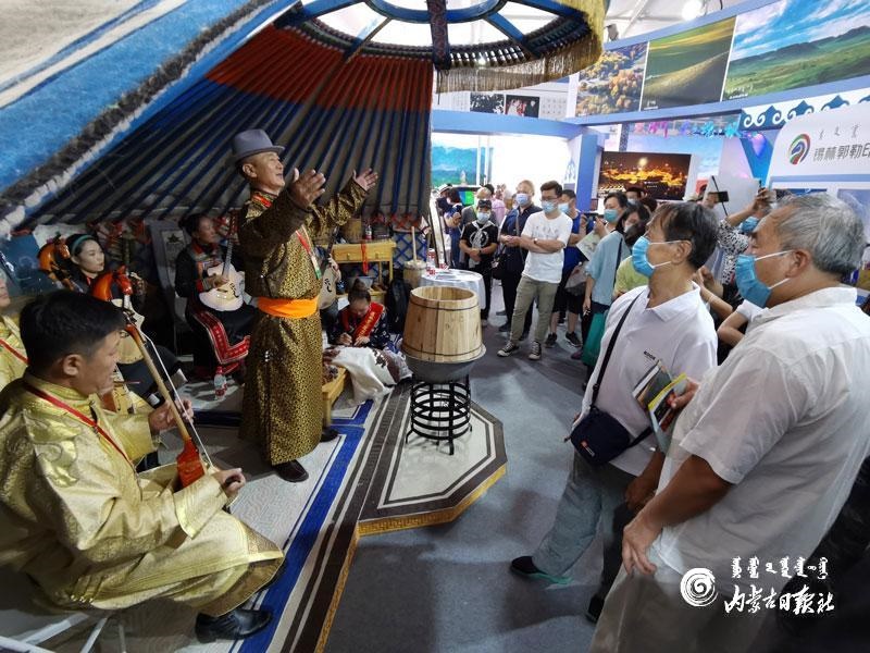 9月6日,在2020年中國國際服務貿(mào)易交易會上,來自錫林郭勒盟烏蘭牧騎的演員正在為觀眾演唱蒙古族民歌。此次服貿(mào)會,內(nèi)蒙古展區(qū)以“祖國正北方亮麗內(nèi)蒙古”為主題,通過宣傳推介內(nèi)蒙古豐富的文化旅游資源和線路,增進了首都群眾對內(nèi)蒙古的了解,促進了我區(qū)文化和旅游業(yè)穩(wěn)步發(fā)展。內(nèi)蒙古日報社融媒體記者馬建荃
