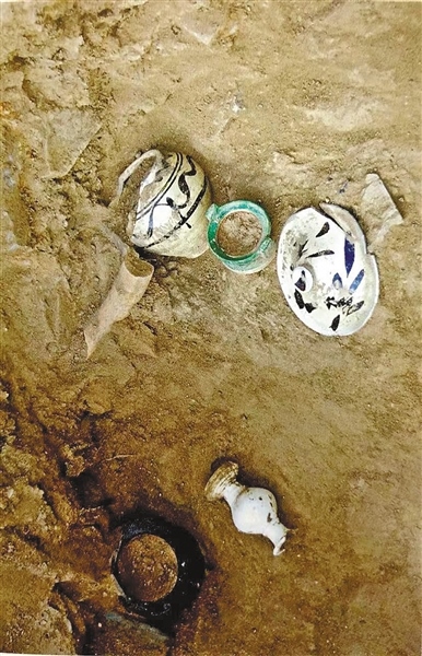 燕家梁遺址出土的元青花等瓷器。