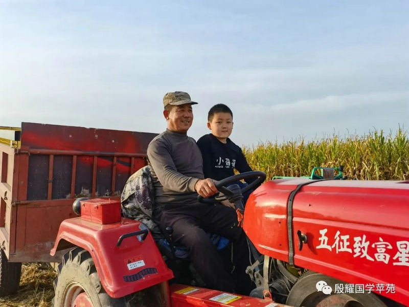 父親讓曈曈接地氣的愿望實現(xiàn)了,長得越來越壯實的曈曈真是打心眼喜歡上了農(nóng)村,喜歡看叔叔大爺們是如何勞動的。春天澆地的時候,他跟上我的發(fā)小利利到地里去,手里拿上一張鐵鍬學著去攏堰堤;秋收的時候他爬上了丁補元駕駛的收割機,感受農(nóng)民們收割玉米的喜悅;接羔的時候,他又鉆進利軍家的羊群里,抱著出生沒有幾天的小羊羔,給小羊羔喂牛奶……春節(jié)前的一兩天是他最忙的時候:一會跟上大爹貼春聯(lián),一會跟上茹義大爺掛紅燈,忙得不亦樂乎。前一段時間回村里他又要跟上利軍大爺出村放羊去,又要跟上茹義大爺去種玉米,在城里他是見識不到這些的。