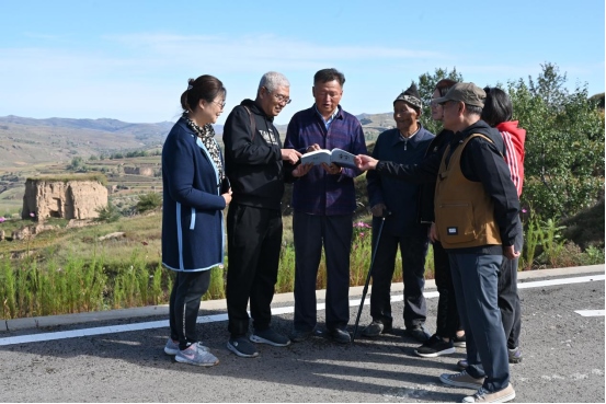 為了助推清水河縣全力推進(jìn)長(zhǎng)城國(guó)家文化公園項(xiàng)目建設(shè),呼和浩特市長(zhǎng)城科普學(xué)會(huì)會(huì)員們到達(dá)馬頭山下的小元峁段明長(zhǎng)城、川峁村鴻門口馬市遺址、水泉鎮(zhèn)紅(鴻)門口地下長(zhǎng)城博物館后,顧不得旅途勞頓和登山困乏,立即開展考察工作、拍照、察看、比對(duì)、討論,將學(xué)會(huì)出版的《長(zhǎng)城烽火》《中國(guó)歷代長(zhǎng)城詩(shī)大全》《情系長(zhǎng)城》等書籍贈(zèng)送給水泉鎮(zhèn)政府,為智庫(kù)專家高振清贈(zèng)送聘書,聽他講解鴻門口的歷史。
