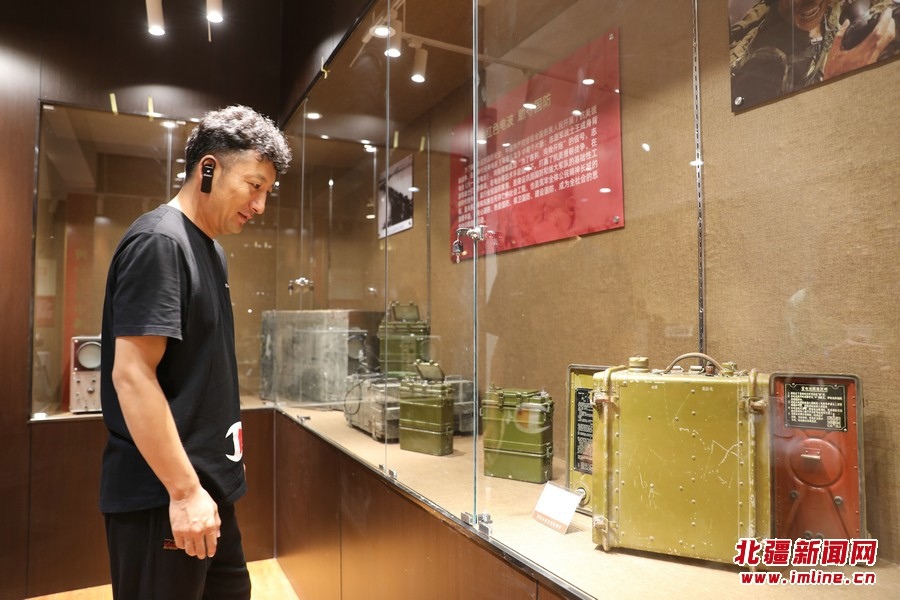 8月17日,講解員在向參觀者講解無線電歷史
