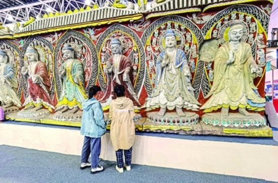 2023年10月19日,游客欣賞3D打印的云岡造像。新華每日電訊記者王學濤攝