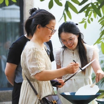 游客在柯橋古鎮(zhèn)體驗非遺漆扇制作。以上圖片均為柯橋古鎮(zhèn)保護中心提供