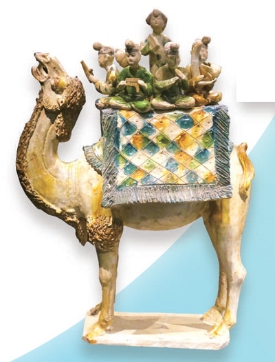 三彩載樂(lè)駱駝俑。