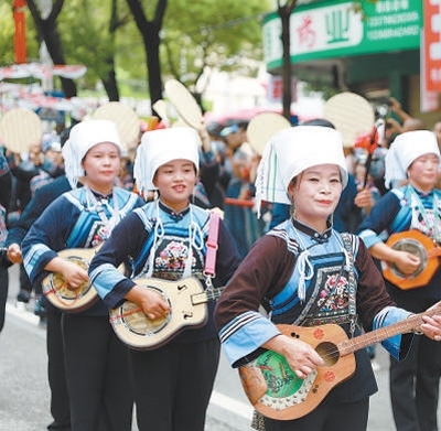 “今年,我們新增了‘布依族婚俗’方陣?!被菟h文聯(lián)副主席羅建華介紹,“婚俗具有豐富的內(nèi)容,可集中展示民族的習(xí)俗、禮儀、服飾與風(fēng)物,是承載民族民間文化的綜合體?!?/p>