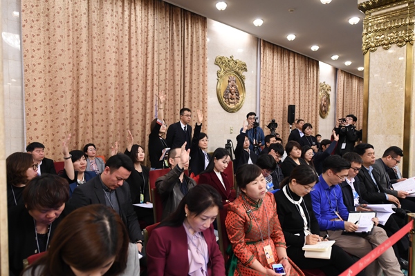 3月6日下午,十三屆全國人大二次會(huì)議內(nèi)蒙古代表團(tuán)在人民大會(huì)堂內(nèi)蒙古廳舉行全團(tuán)會(huì)議,繼續(xù)審議政府工作報(bào)告。本次全團(tuán)會(huì)議向境內(nèi)外媒體開放。