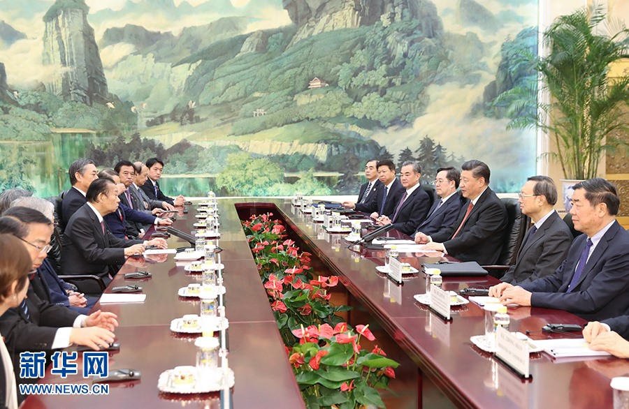 習近平指出,當前,中日關(guān)系重回正常軌道,呈現(xiàn)積極發(fā)展勢頭。雙方要恪守中日四個政治文件確立的各項原則,堅持和平友好大方向,持續(xù)深化互利合作,推動兩國關(guān)系健康穩(wěn)定發(fā)展。要把中日“互不構(gòu)成威脅”、“互為合作伙伴,相互支持對方和平發(fā)展”的政治共識落到實處,把兩國各領(lǐng)域交流合作推向新水平。雙方要深挖合作潛力。中方歡迎日方繼續(xù)深入?yún)⑴c中國改革開放,希望日方更加積極參與共建“一帶一路”。雙方要加強溝通和協(xié)調(diào),共同維護多邊主義和自由貿(mào)易,共同推動建設(shè)開放型世界經(jīng)濟。中方支持日方辦好二十國集團領(lǐng)導(dǎo)人大阪峰會。今年是中日青少年交流促進年,雙方要在兩國民間特別是青少年當中廣泛播撒友好種子,推進民心相通。