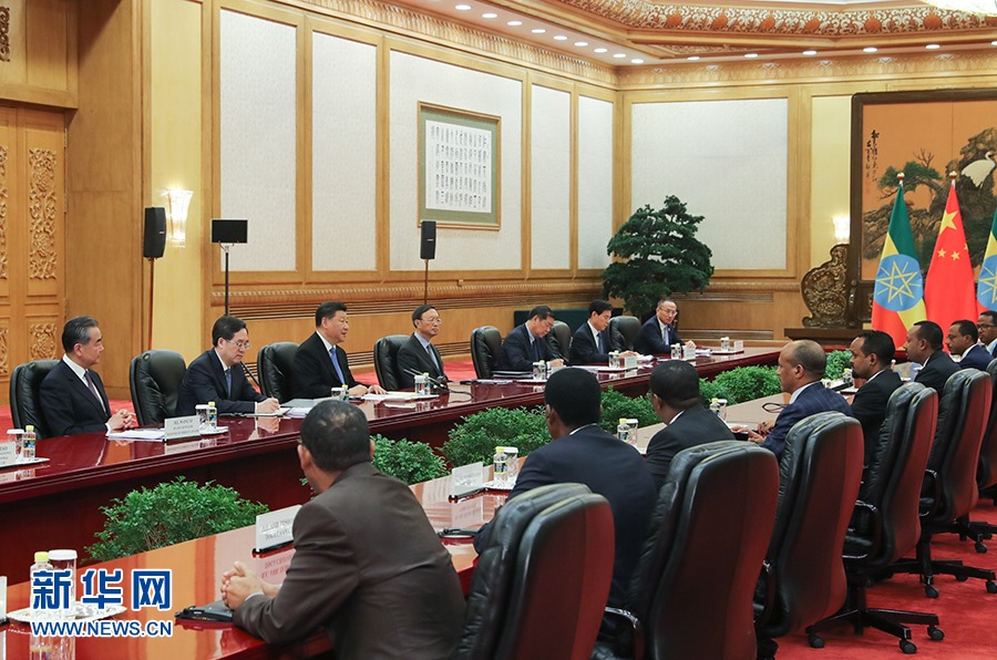 習近平強調(diào),埃塞俄比亞是中國在非洲的重要合作伙伴。中埃都是發(fā)展中大國,都依靠自身努力走出一條符合本國國情的發(fā)展道路。中方支持埃方維護穩(wěn)定、發(fā)展經(jīng)濟、改善民生的努力,愿同埃方保持高層交往勢頭,在涉及彼此核心利益和重大關切問題上繼續(xù)相互理解和支持;推進雙邊互利合作,幫助埃方提升工業(yè)化水平和出口創(chuàng)匯能力;密切在氣候變化、非洲之角形勢等國際和地區(qū)事務中溝通協(xié)調(diào)。中方愿以共建“一帶一路”和落實中非合作論壇北京峰會成果為契機,深化兩國全面戰(zhàn)略合作伙伴關系,更好造福兩國人民。