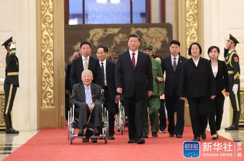 ↑9月29日,中華人民共和國國家勛章和國家榮譽稱號頒授儀式在北京人民大會堂金色大廳隆重舉行。中共中央總書記、國家主席、中央軍委主席習近平同國家勛章和國家榮譽稱號獲得者一同步入會場。新華社記者丁海濤攝