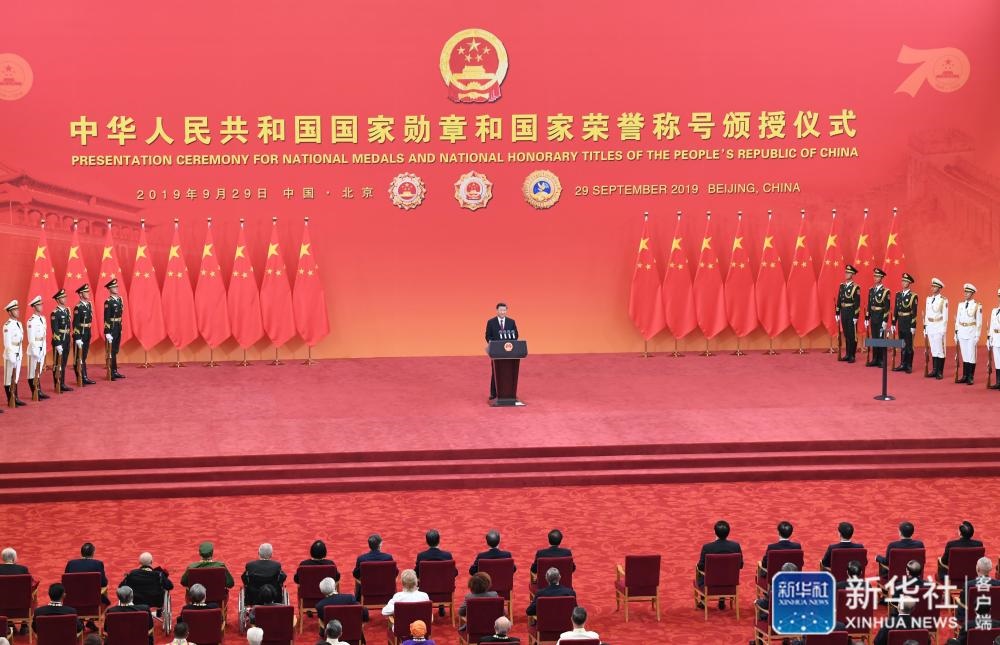 習近平向國家勛章和國家榮譽稱號獲得者頒授勛章獎?wù)虏l(fā)表重要講話