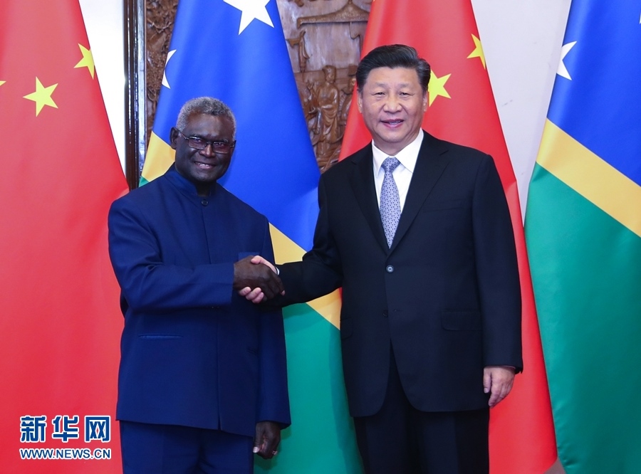 國(guó)家主席習(xí)近平9日在釣魚臺(tái)國(guó)賓館會(huì)見所羅門群島總理索加瓦雷。