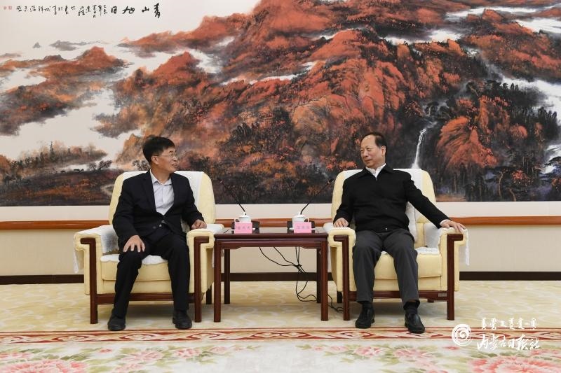 9月27日中午,石泰峰書記會見昆山科騰生物科技有限公司董事長魯茂龍。內蒙古日報記者 袁永紅 攝