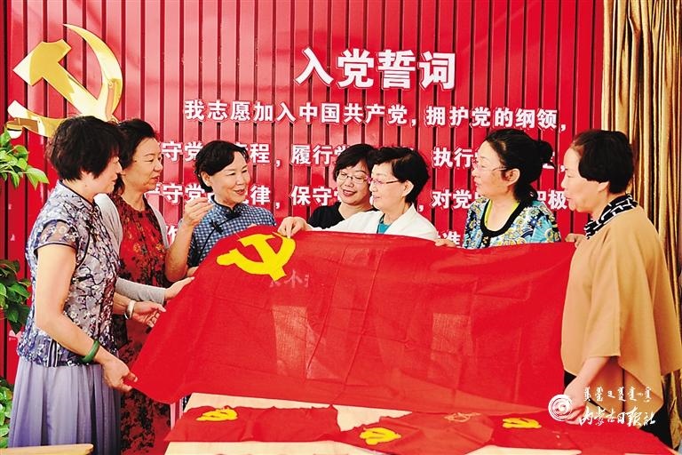 6月30日,呼和浩特市玉泉區(qū)五塔北街社區(qū)老黨員們正在一針一線繡黨旗。當(dāng)日,該社區(qū)舉行了“繡黨旗 迎七一”獻(xiàn)禮活動(dòng),老黨員、新黨員和志愿者一起繡黨旗、頌黨恩,抒發(fā)對(duì)黨的熱愛(ài)之情。(內(nèi)蒙古日?qǐng)?bào)記者 安寅東 攝)