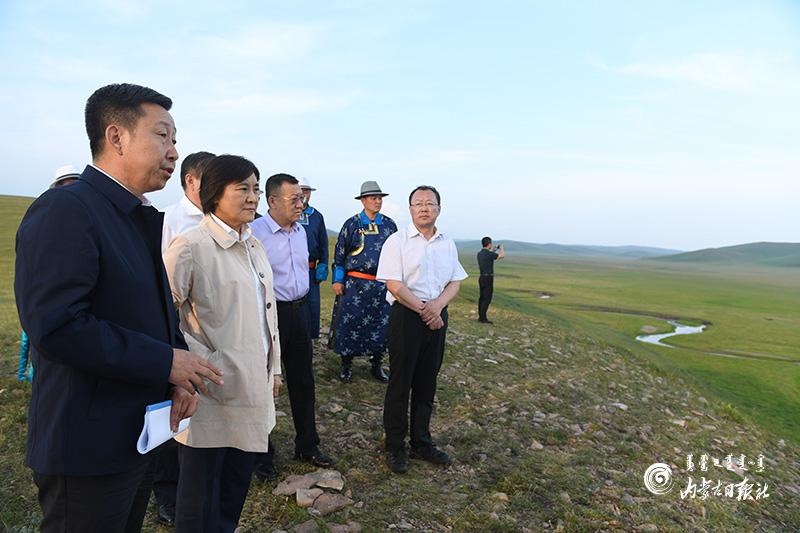 錫林郭勒盟是我國草地類型和植被種類最齊全的草原地區(qū)。在東烏珠穆沁旗,布小林實地考察了退化草原生態(tài)修復試點項目,深入了解項目規(guī)劃、治理模式以及取得的成效。在烏拉蓋管理區(qū),她走進李燕家庭牧場、哈拉蓋圖國營農牧場,調研草原生態(tài)保護、文化旅游業(yè)發(fā)展以及牧民增收等方面的情況。布小林強調,要牢固樹立綠水青山就是金山銀山的理念,進一步加大草原生態(tài)系統(tǒng)的保護和修復力度,加快轉變畜牧業(yè)發(fā)展方式,努力實現(xiàn)保護草原生態(tài)和促進牧民增收雙贏。