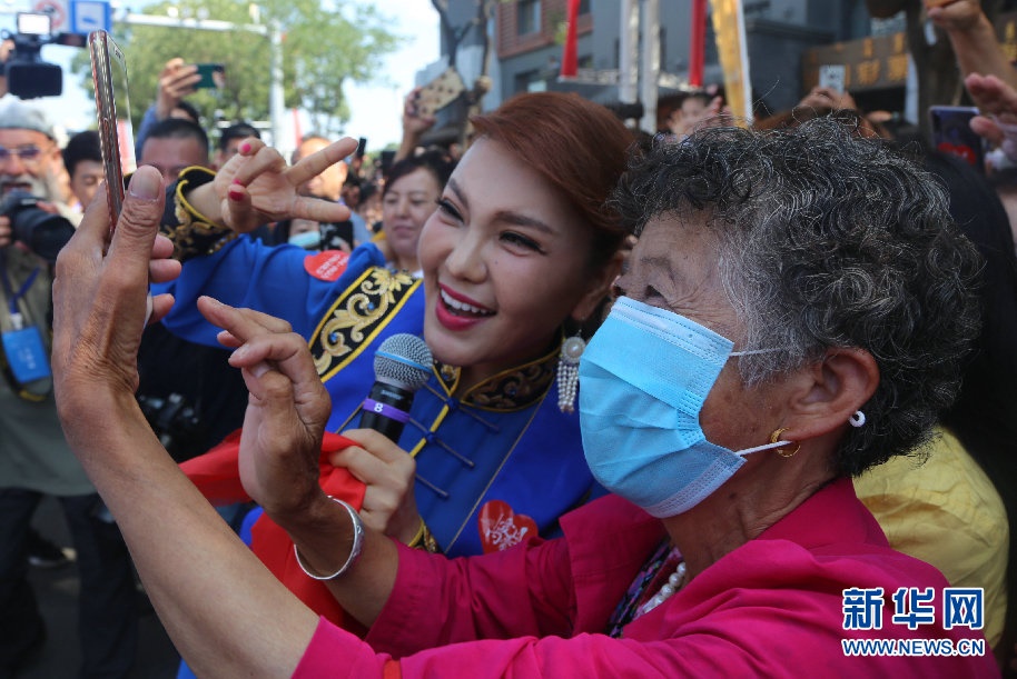 開幕式上歌手烏蘭圖雅與觀眾互動。新華網(wǎng) 李倩攝