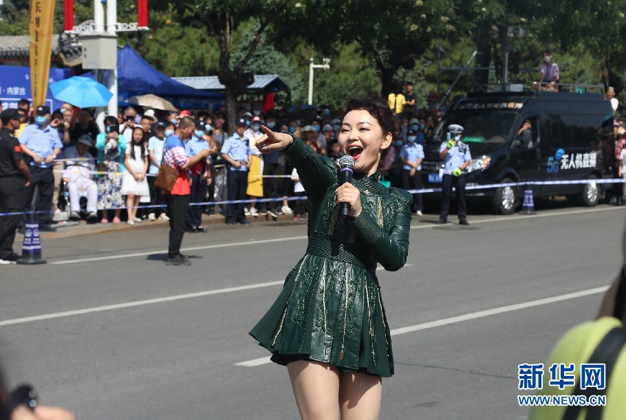歌手呼斯楞在巡游車上演唱草原歌曲。新華網(wǎng) 楊騰格爾攝
