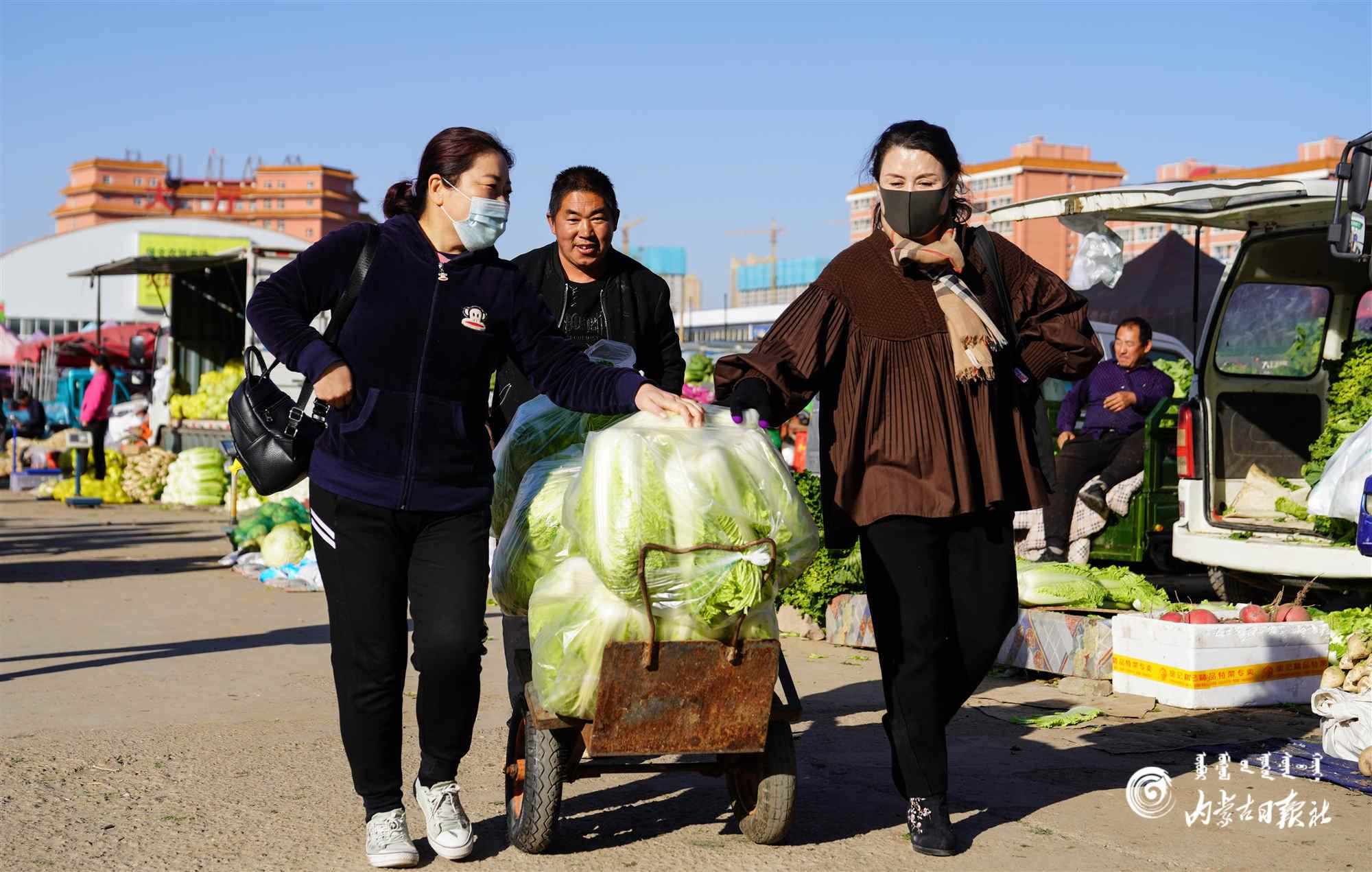 天氣轉(zhuǎn)涼冬儲菜集中上市10月14日,在呼和浩特市保全莊農(nóng)貿(mào)市場內(nèi),蔬菜商戶用小車為市民運(yùn)送冬儲大白菜。隨著冬季臨近,大白菜、土豆、大蔥等冬儲菜開始大批量進(jìn)入市場,雖然現(xiàn)在冬季蔬菜供應(yīng)十分豐富,但購買冬儲菜依然是許多市民的一種情懷。內(nèi)蒙古日報記者 程英軍攝