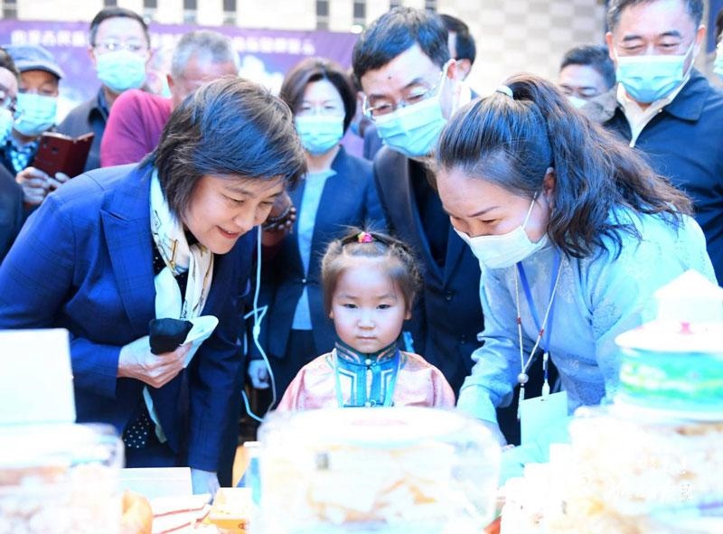 10月17日,自治區(qū)黨委副書(shū)記、自治區(qū)主席布小林,在全區(qū)推進(jìn)奶業(yè)振興暨民族傳統(tǒng)奶制品產(chǎn)業(yè)發(fā)展現(xiàn)場(chǎng)會(huì)上參觀各盟市民族傳統(tǒng)奶制品產(chǎn)品展示。內(nèi)蒙古日?qǐng)?bào)記者 韓卿立 攝