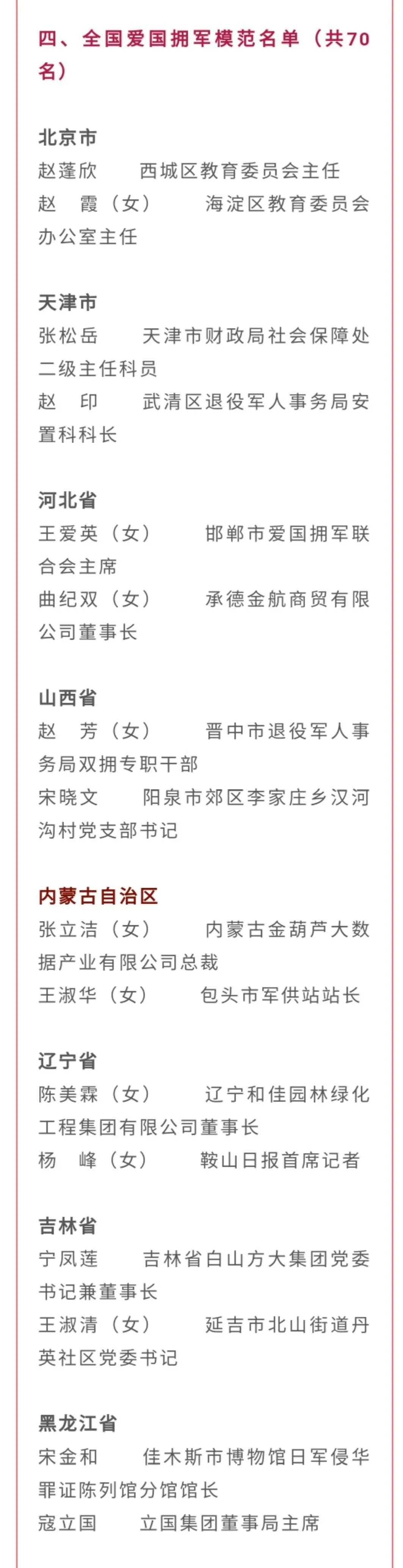 全國雙擁模范城(縣)、全國愛國擁軍模范單位和擁政愛民模范單位、全國愛國擁軍模范和擁政愛民模范名單